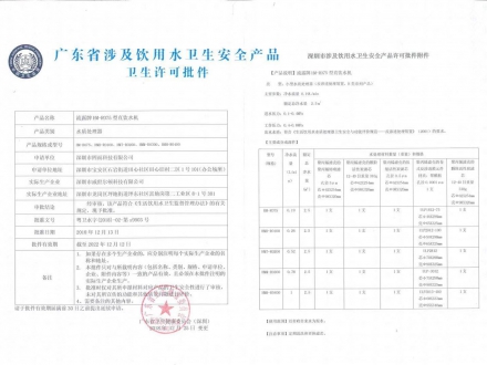 流露牌凈水器系列產(chǎn)品涉水批件